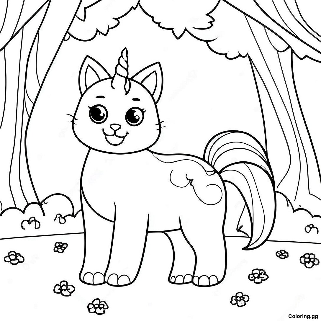 Чарівний Кіт-Єдиноріг У Лісі Розмальовка