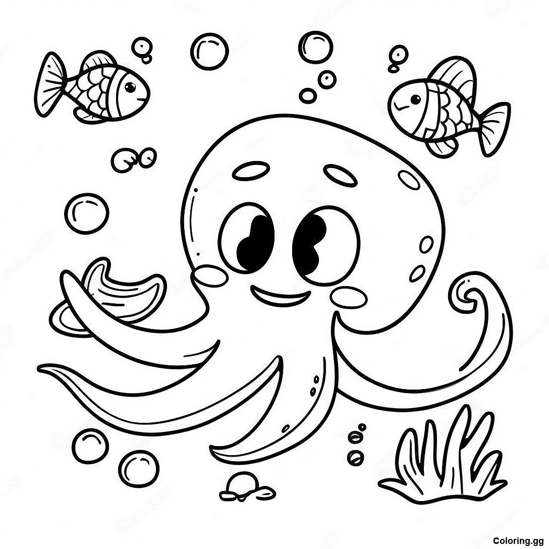Дружній Підлітковий Кракен, Що Заводить Друзів З Рибками - Розмальовка
