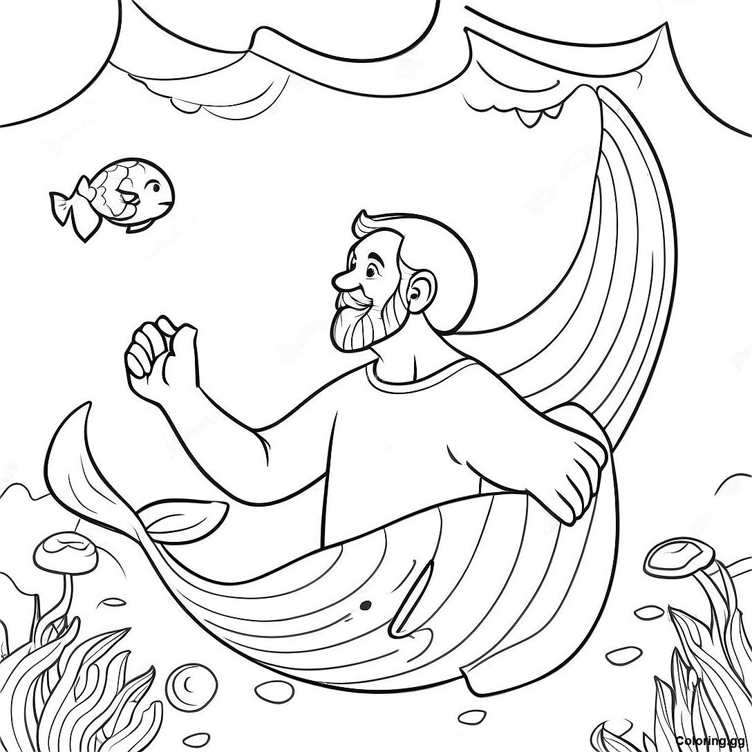 Завантажити версію Йона Молиться Всередині Кита Розмальовка для друку в PDF