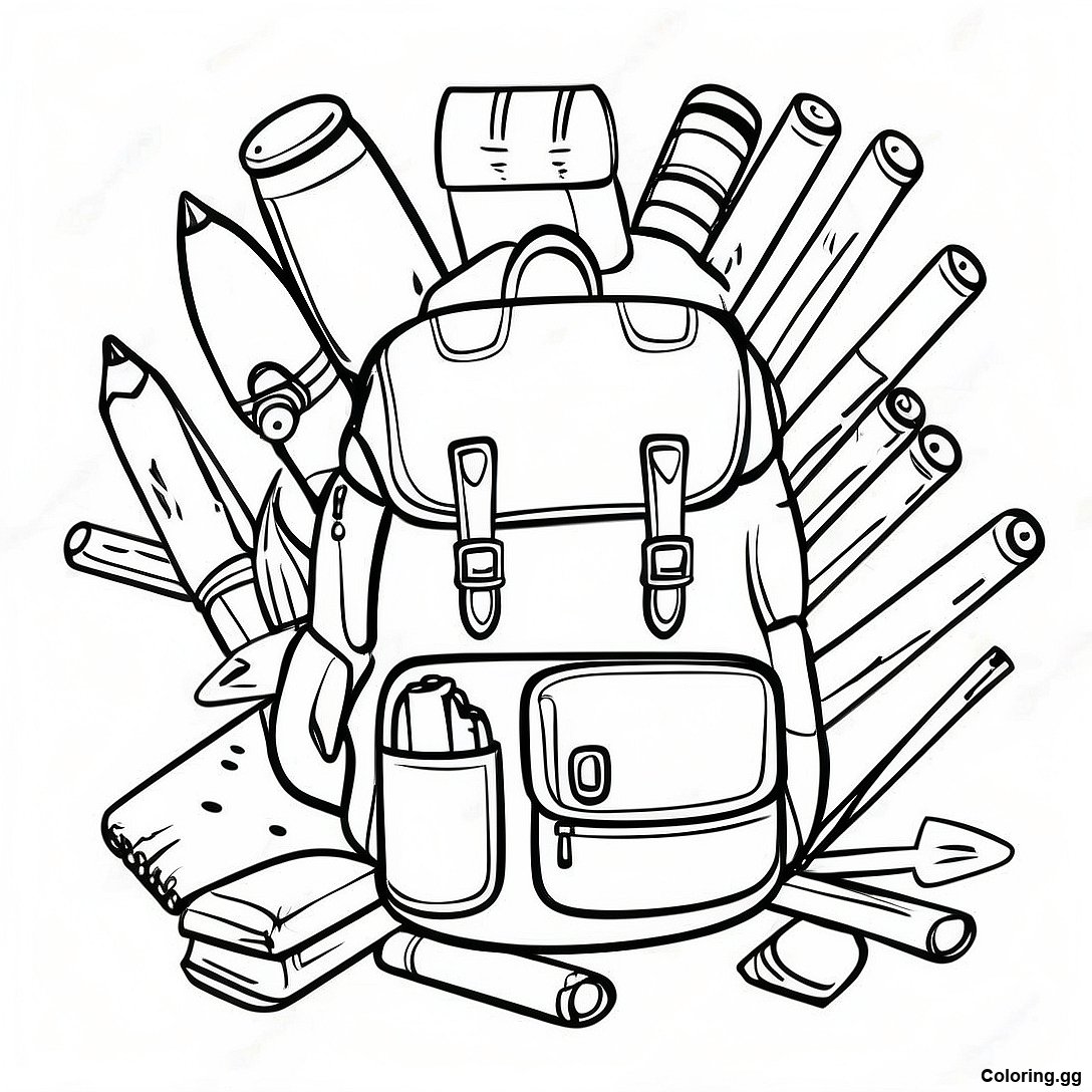 Малюнок Для Розмальовки Рюкзака Для Пригод З Приладдям