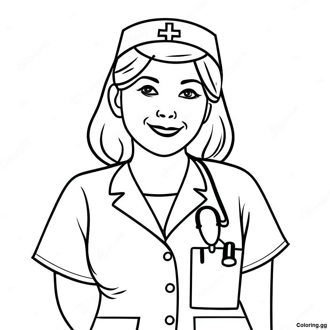 Медсестра В Медичному Одязі З Обладнанням - Розмальовка