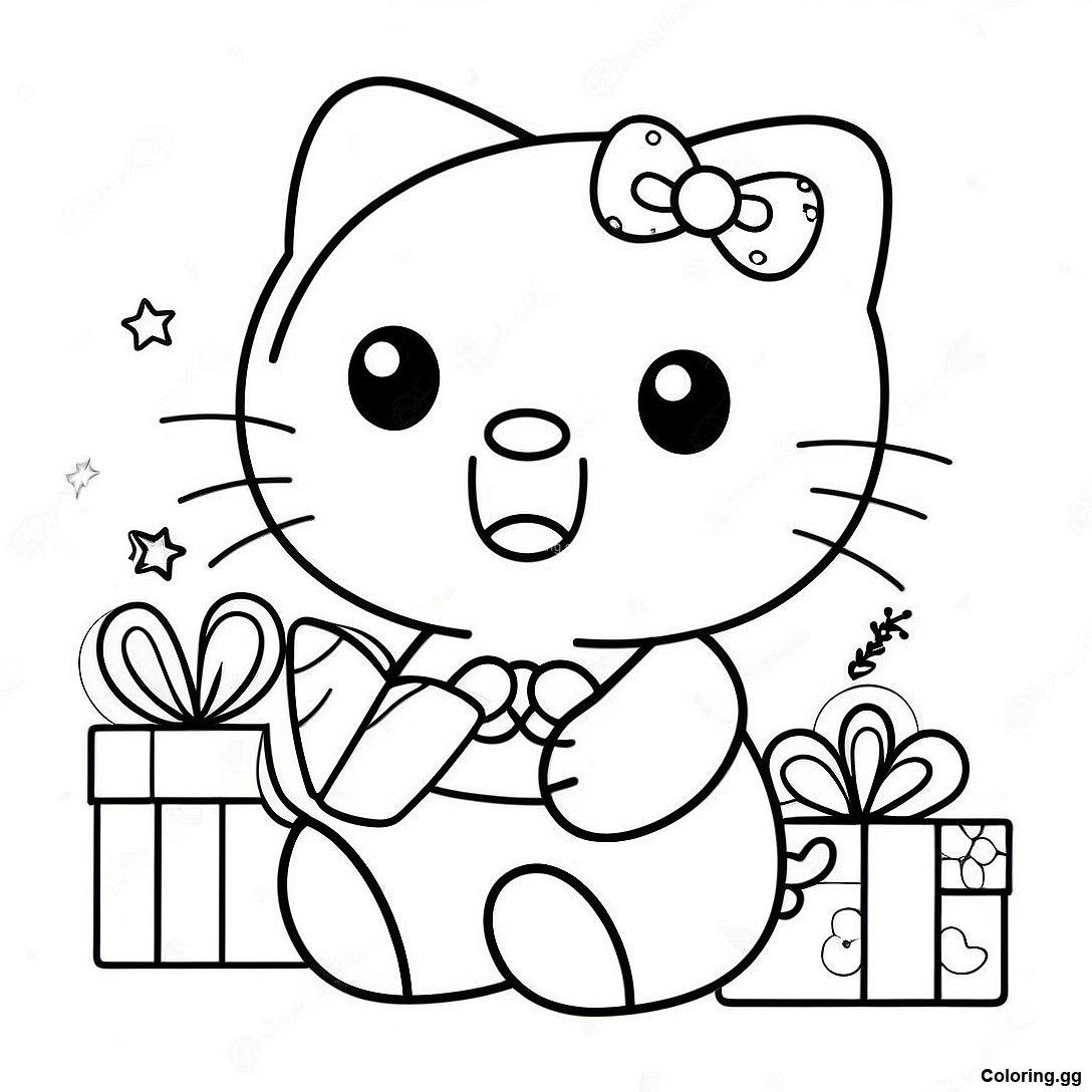 Мила Розмальовка З Hello Kitty Та Різдвяними Подарунками