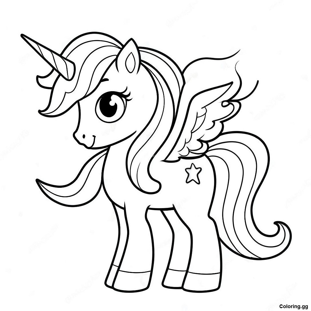 Милий Алікорн З Іскристою Гривою - Розмальовка