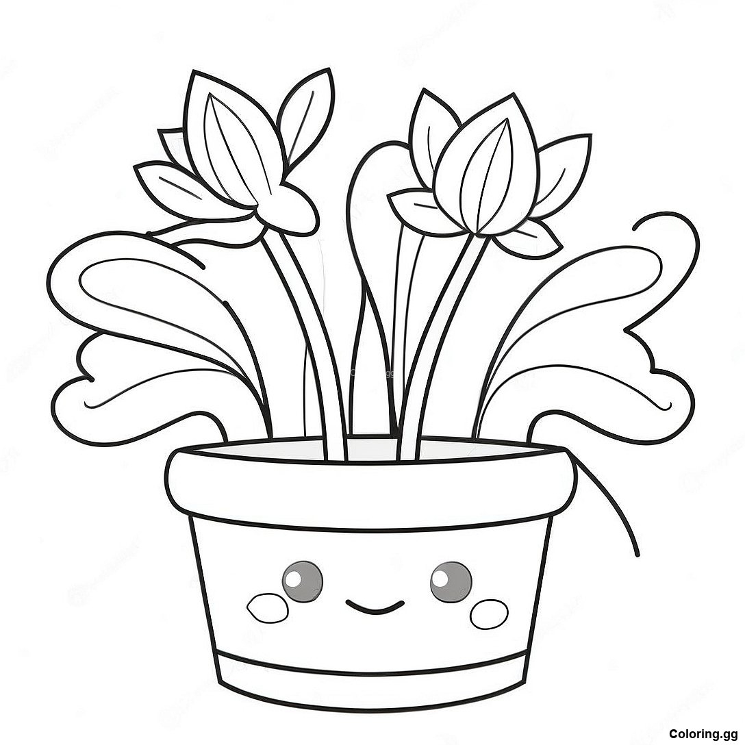 Завантажити версію Милий Горщик З Квітами - Розмальовка для друку в PDF