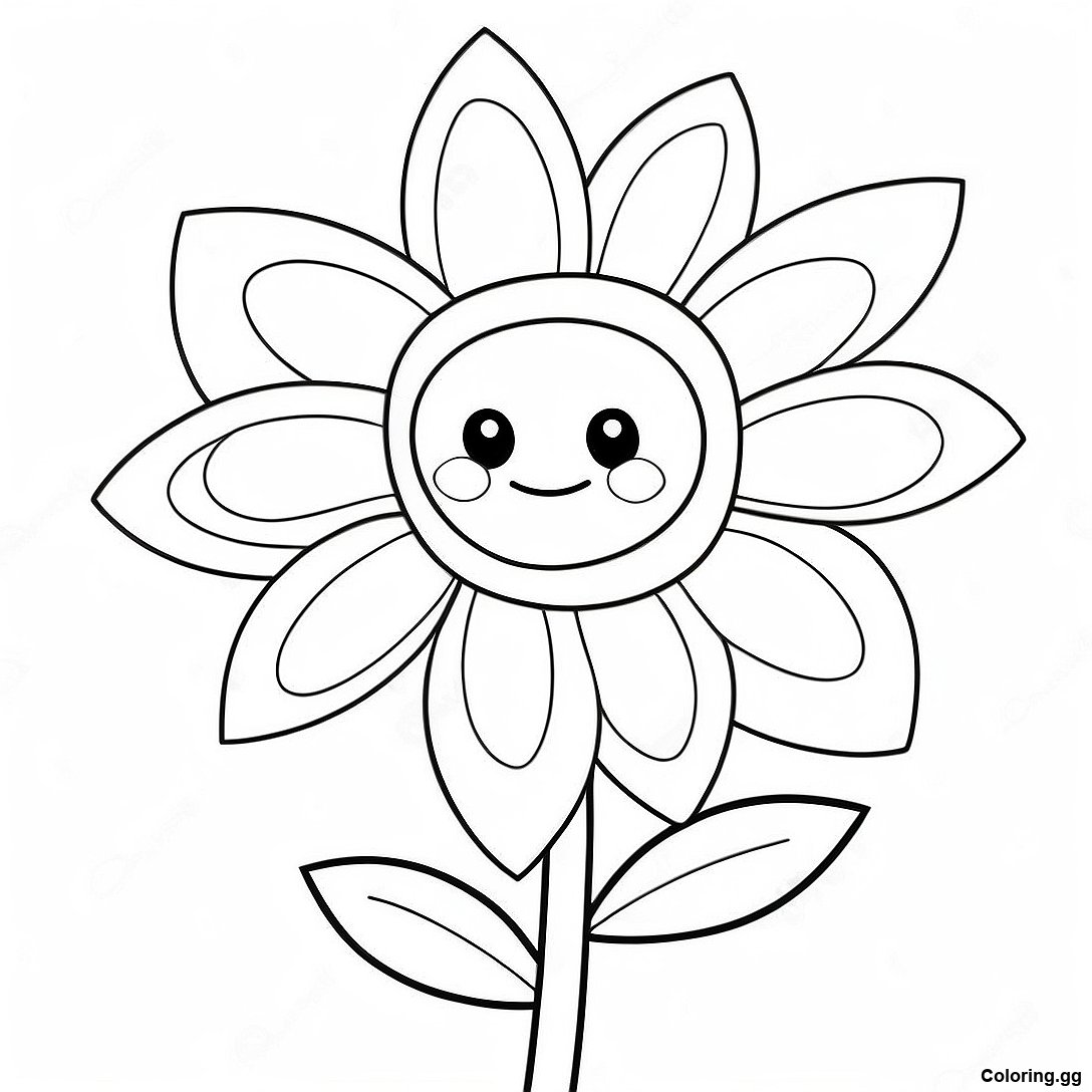 Завантажити версію Милий Мультяшний Квітка На Розмальовці для друку в PDF