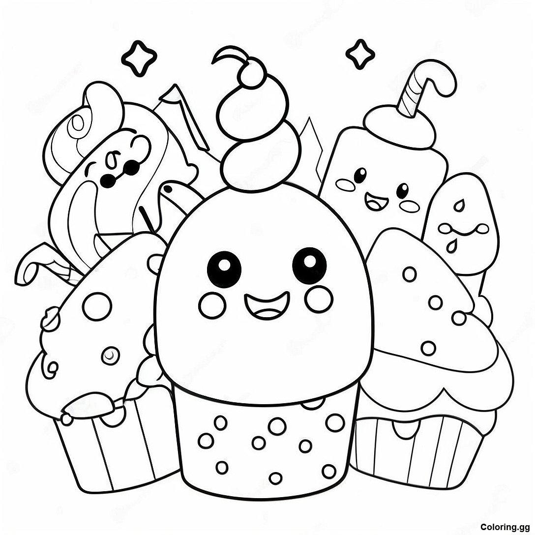 Завантажити версію Милий Num Noms З Капкейками - Розмальовка для друку в PDF