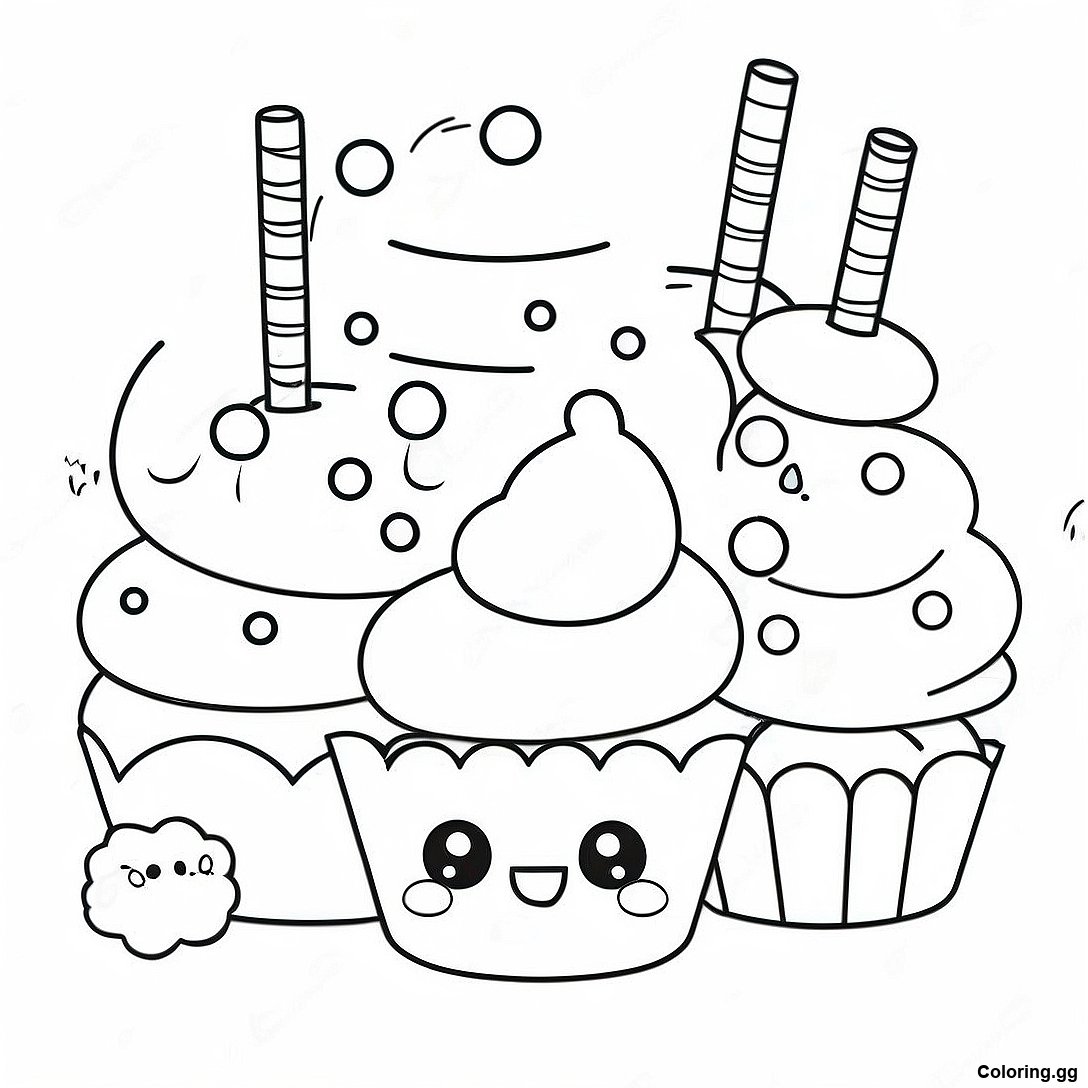 Завантажити версію Милий Num Noms З Капкейками - Розмальовка для друку в PDF
