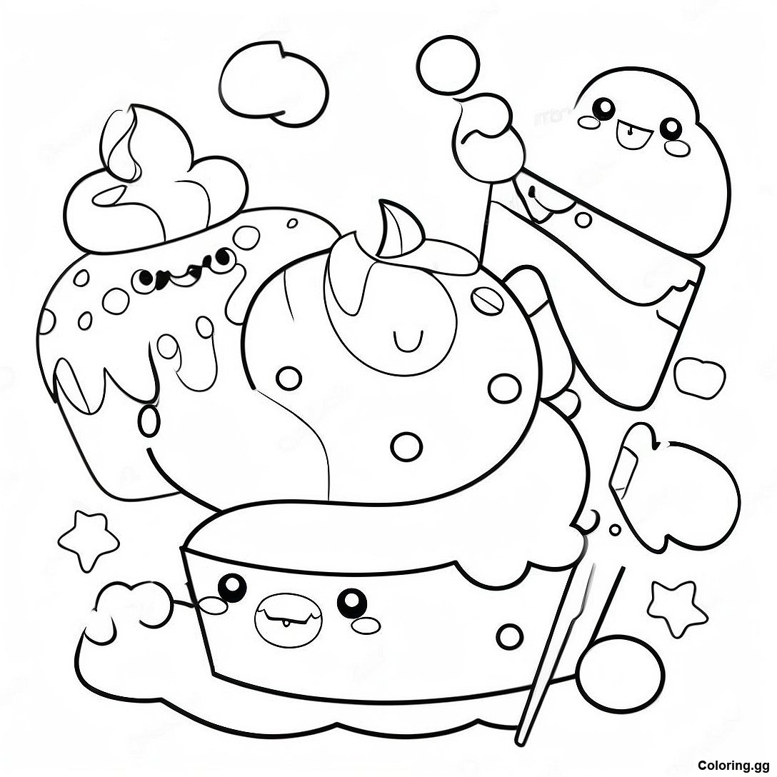 Завантажити версію Милий Num Noms З Капкейками - Розмальовка для друку в PDF