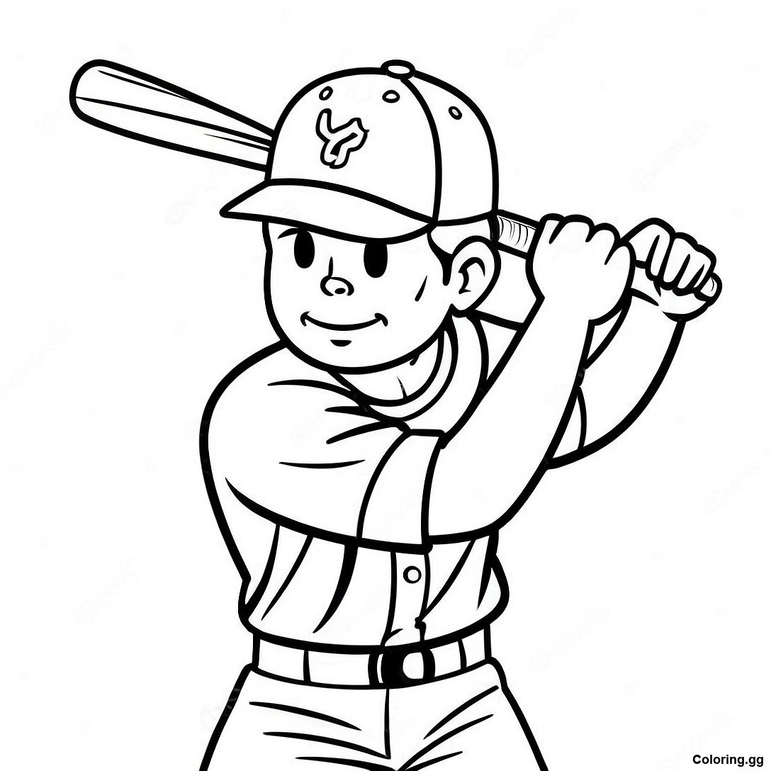 Завантажити версію Розмальовка Бейсболіста З Битою для друку в PDF