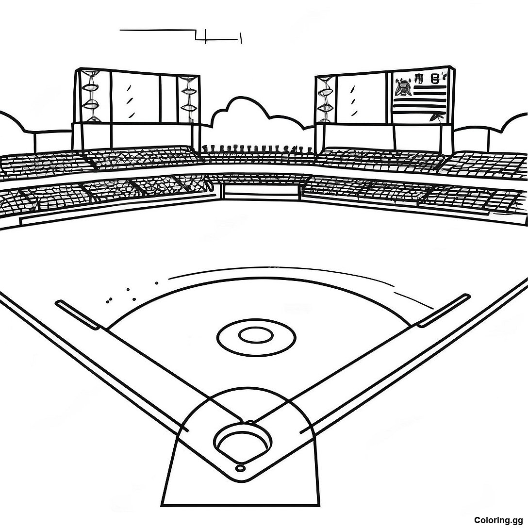 Завантажити версію Розмальовка Бейсбольного Поля З Гравцями для друку в PDF