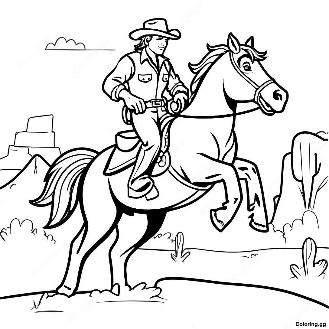 Завантажити версію Розмальовка Бронко З Ковбоєм для друку в PDF
