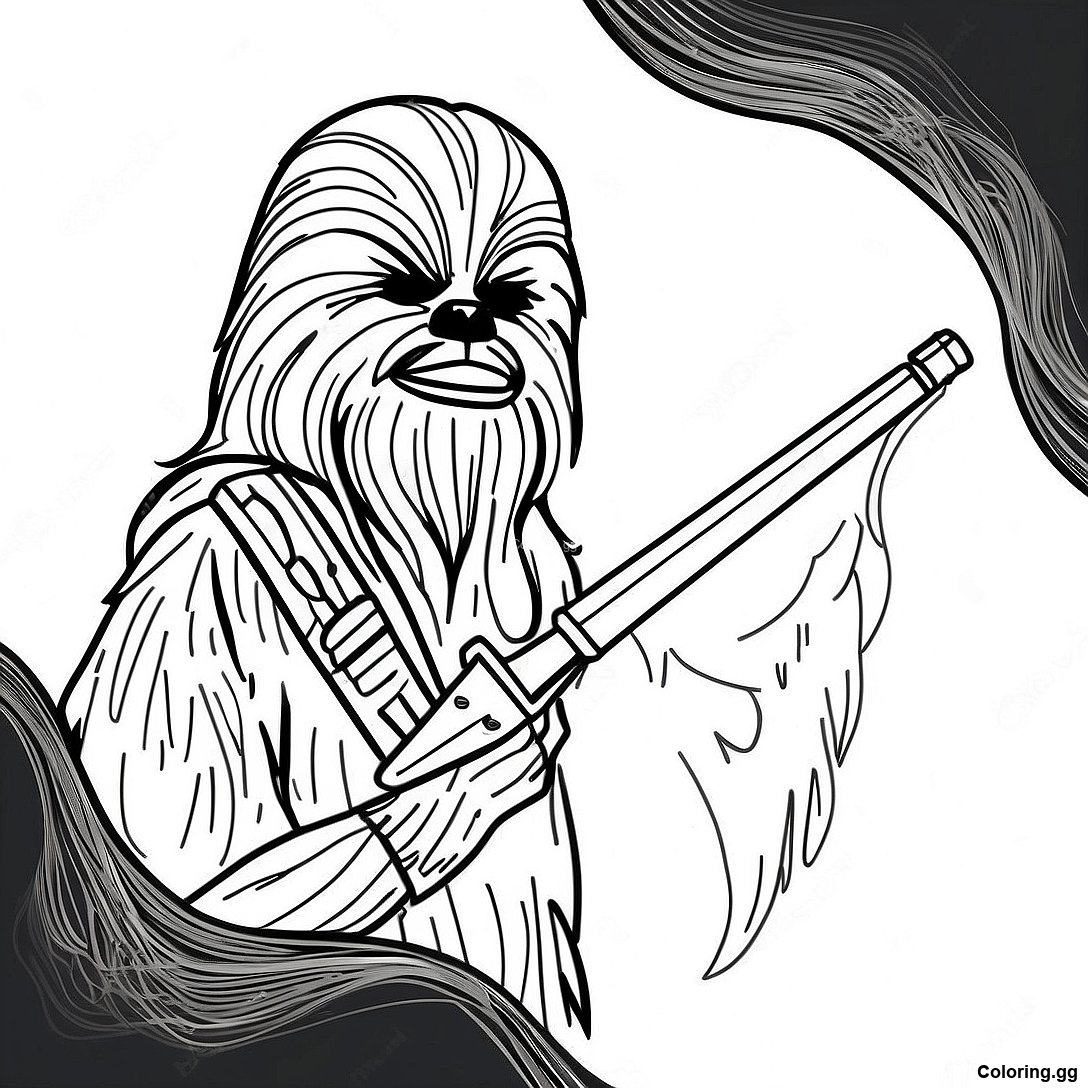 Завантажити версію Розмальовка Чубакки З Луком для друку в PDF