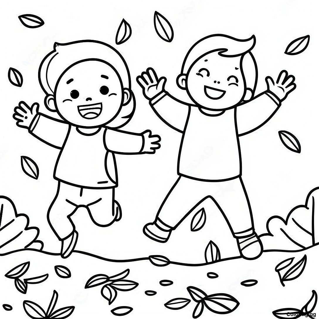 Завантажити версію Розмальовка Грайливих Дітей, Що Стрибають У Листі для друку в PDF