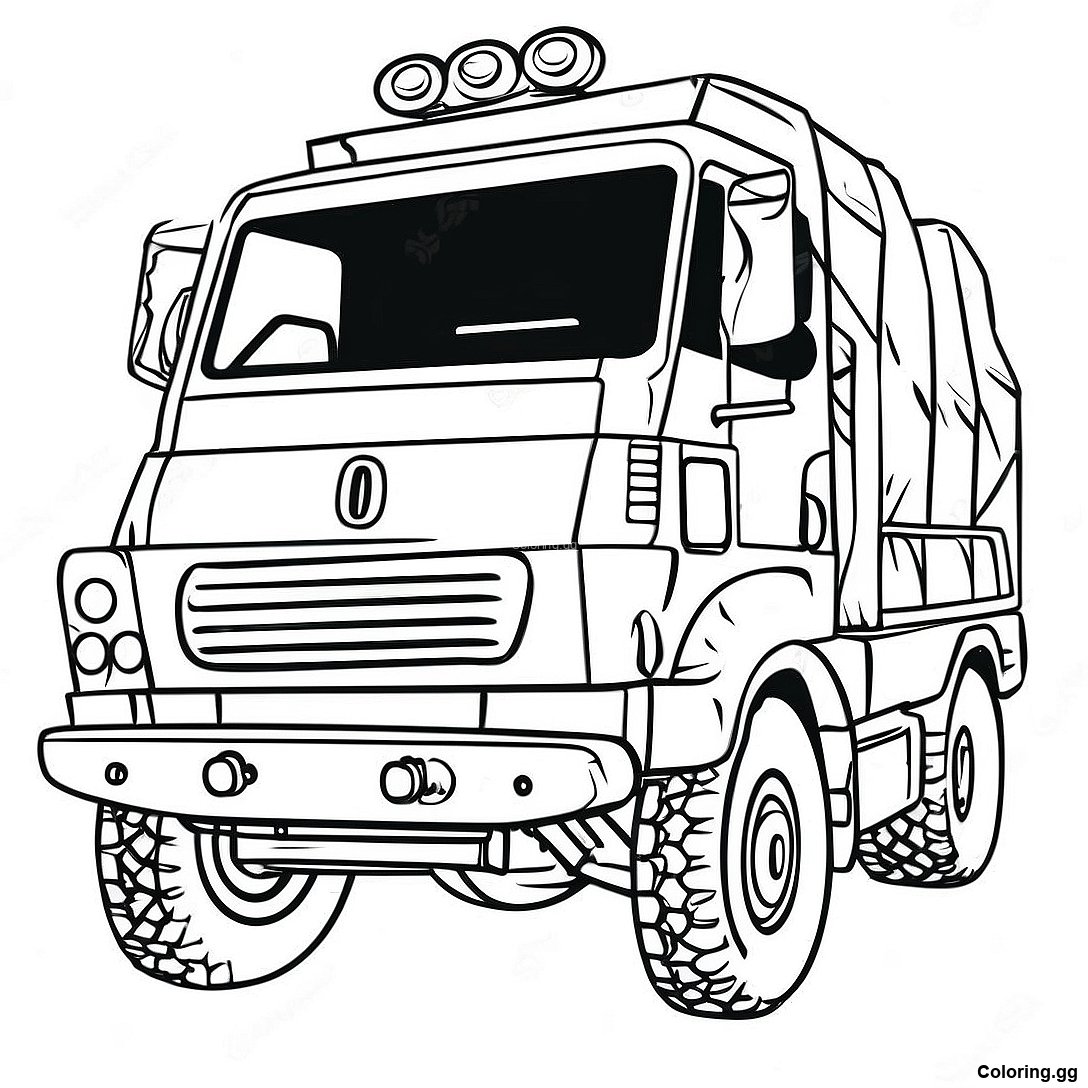 Завантажити версію Розмальовка Камуфляжного Армійського Вантажівки для друку в PDF