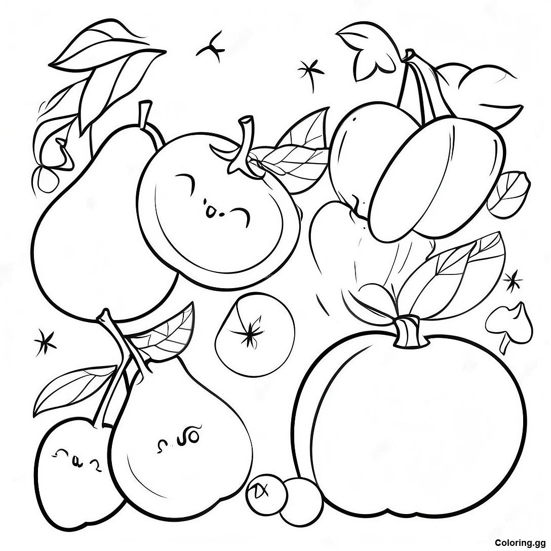 Завантажити версію Розмальовка Кольорових Фруктів Та Овочів для друку в PDF