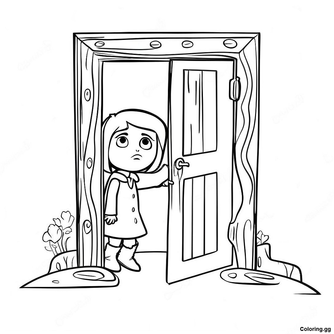 Завантажити версію Розмальовка Королін, Що Досліджує Таємничі Двері для друку в PDF