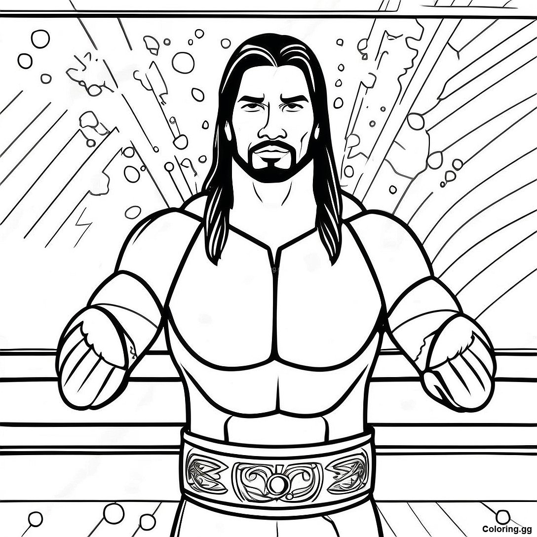 Завантажити версію Розмальовка Романа Рейнса З Чемпіонським Поясом для друку в PDF