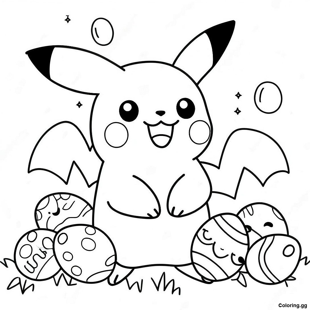 Завантажити версію Розмальовка Щасливий Пікачу З Великодніми Яйцями для друку в PDF