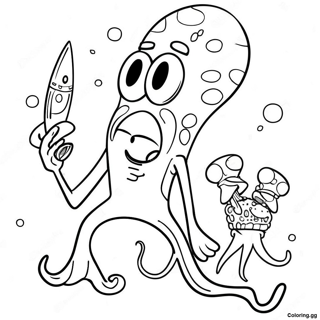 Завантажити версію Розмальовка Сквідварда З Губкою Бобом для друку в PDF