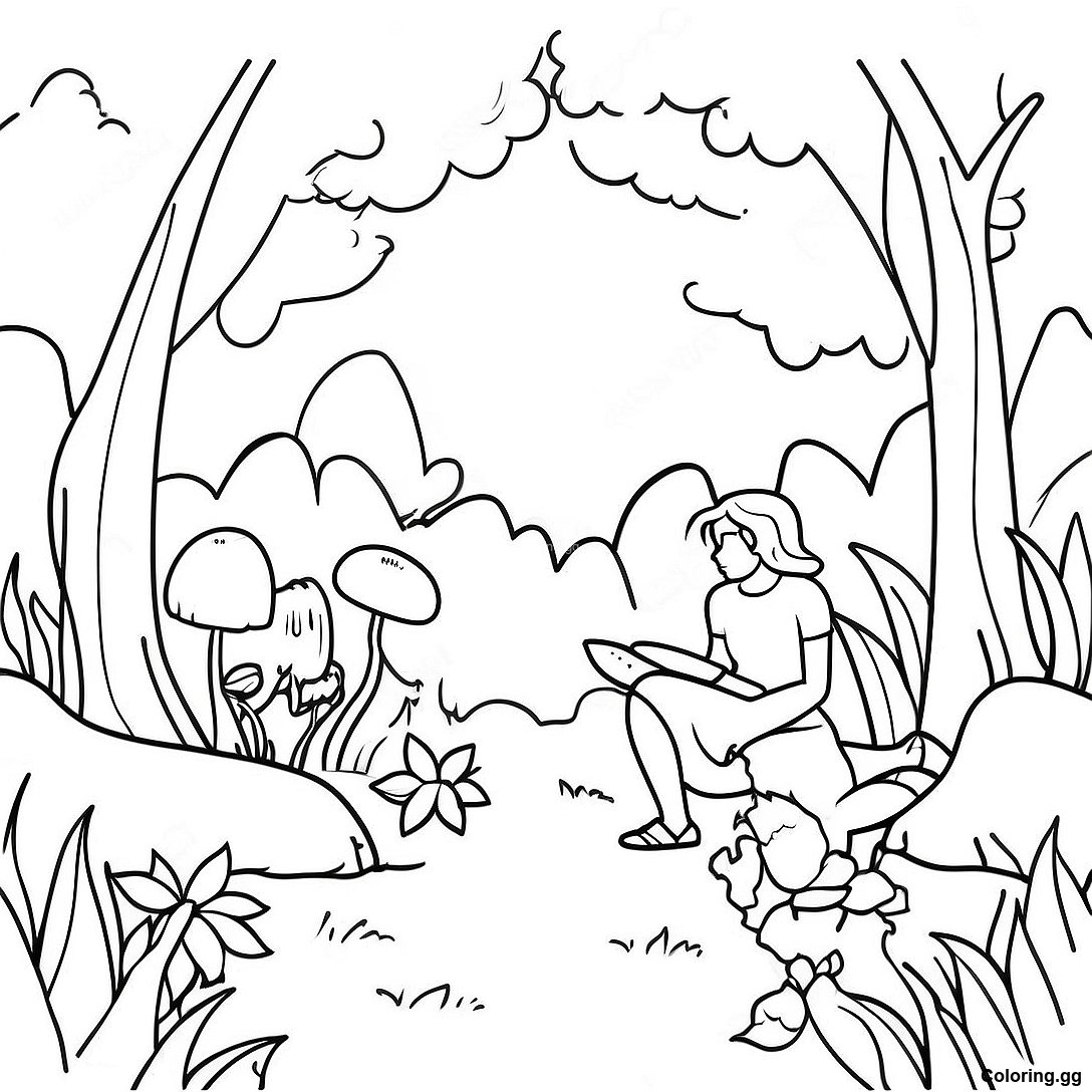 Завантажити версію Розмальовка Сцени В Саду Едему для друку в PDF
