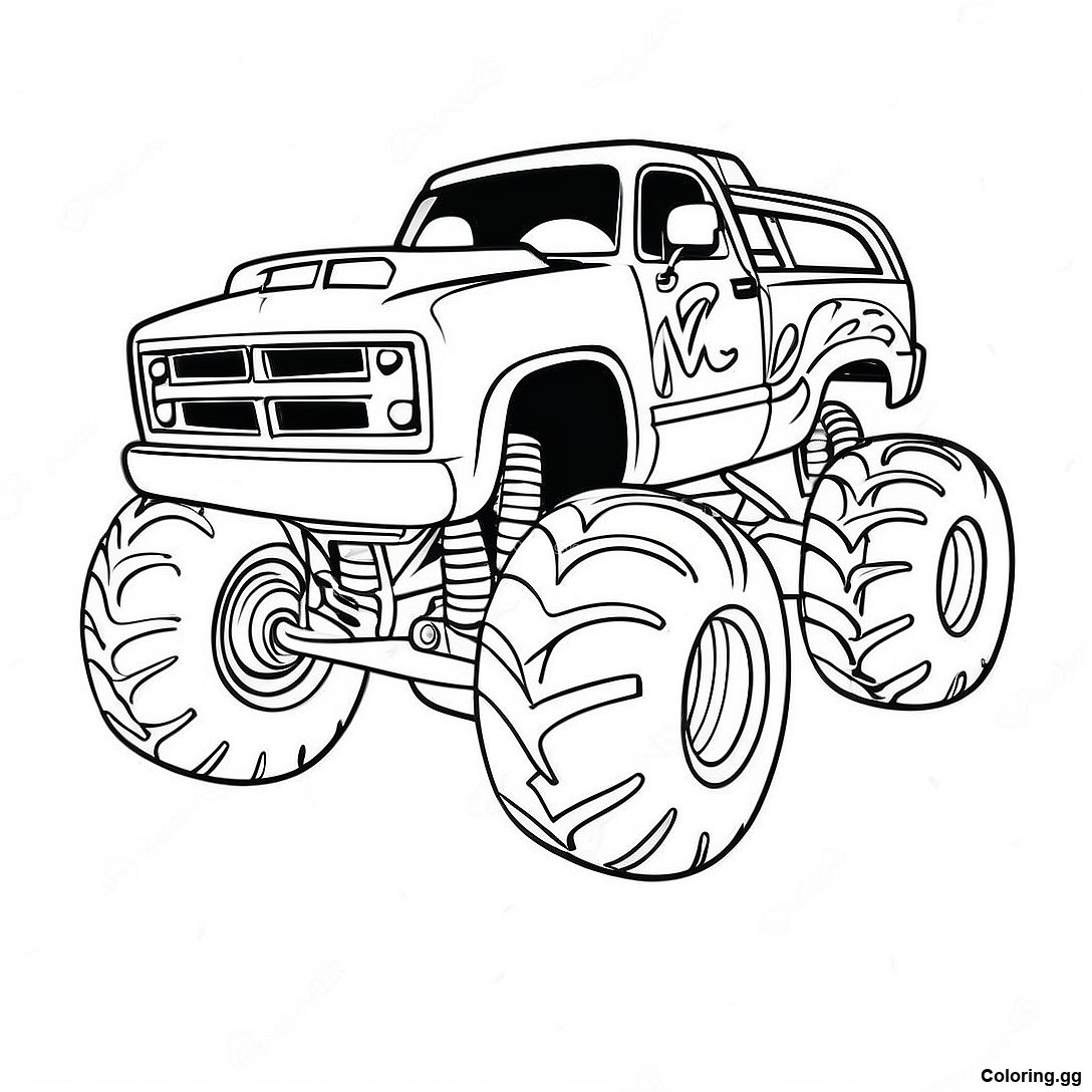 Завантажити версію Розмальовка З Кольоровим Монстр-Траком На Гонках для друку в PDF