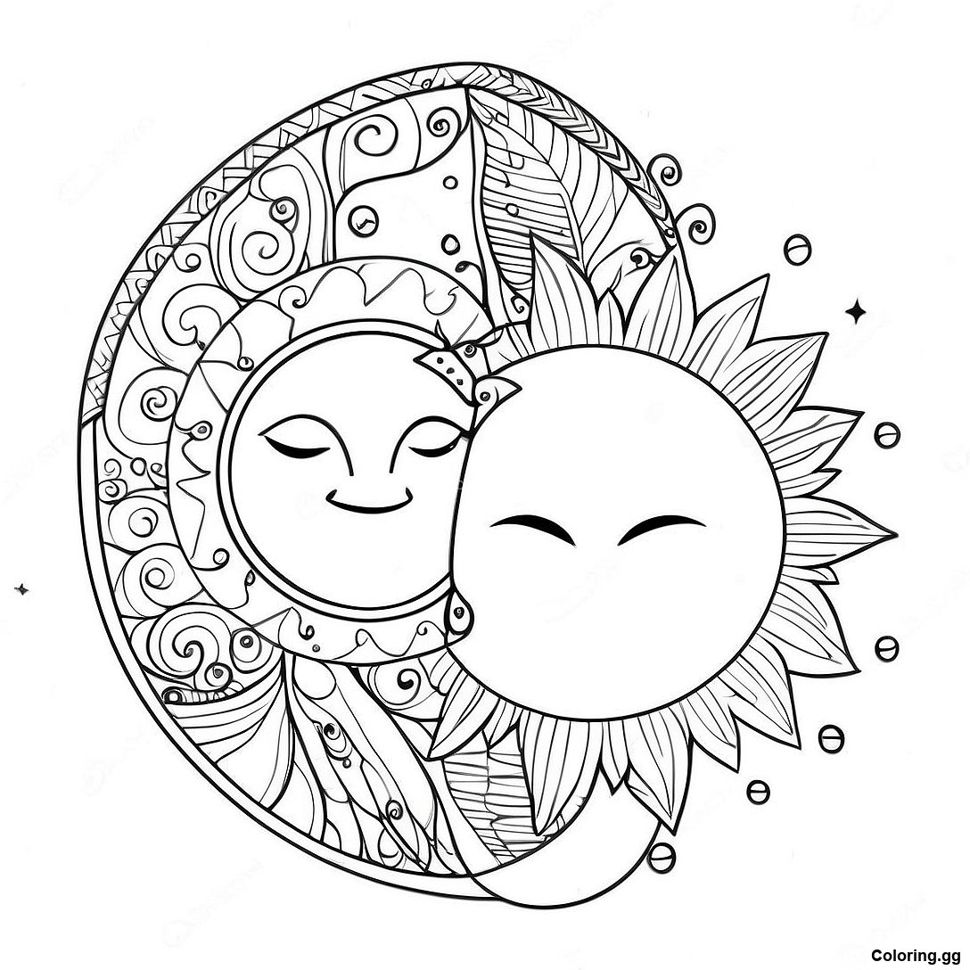 Завантажити версію Складне Богемне Сонце І Місяць - Розмальовка для друку в PDF