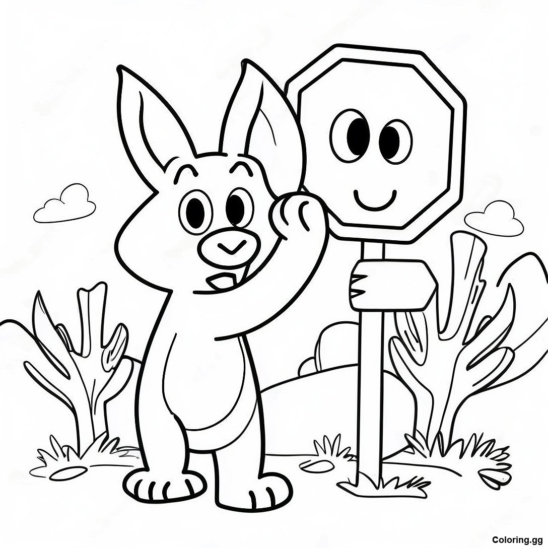 Завантажити версію Смішний Знак Стоп З Тваринами Для Розмальовки для друку в PDF