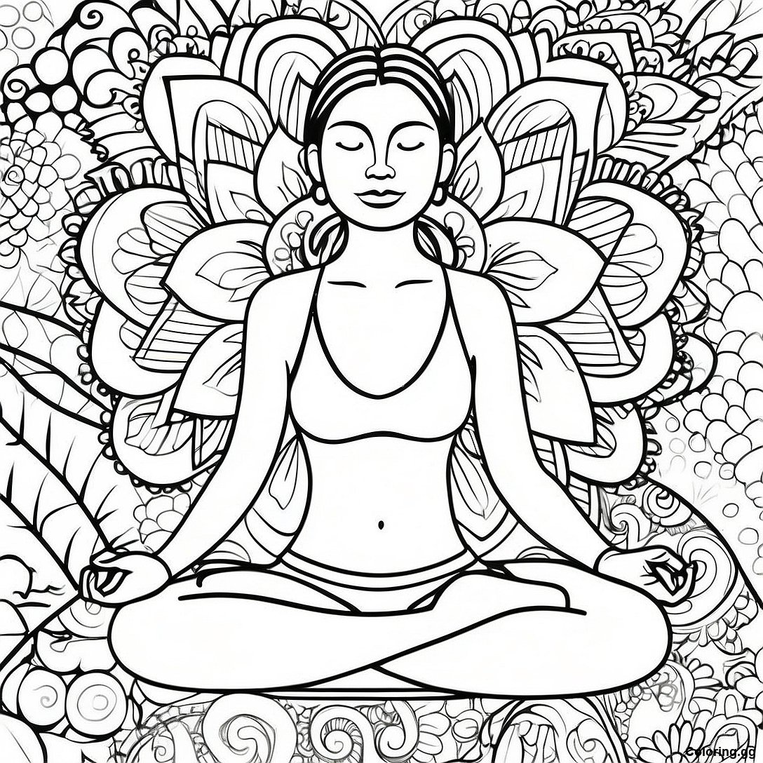 Завантажити версію Спокійна Поза Йоги Розмальовка для друку в PDF