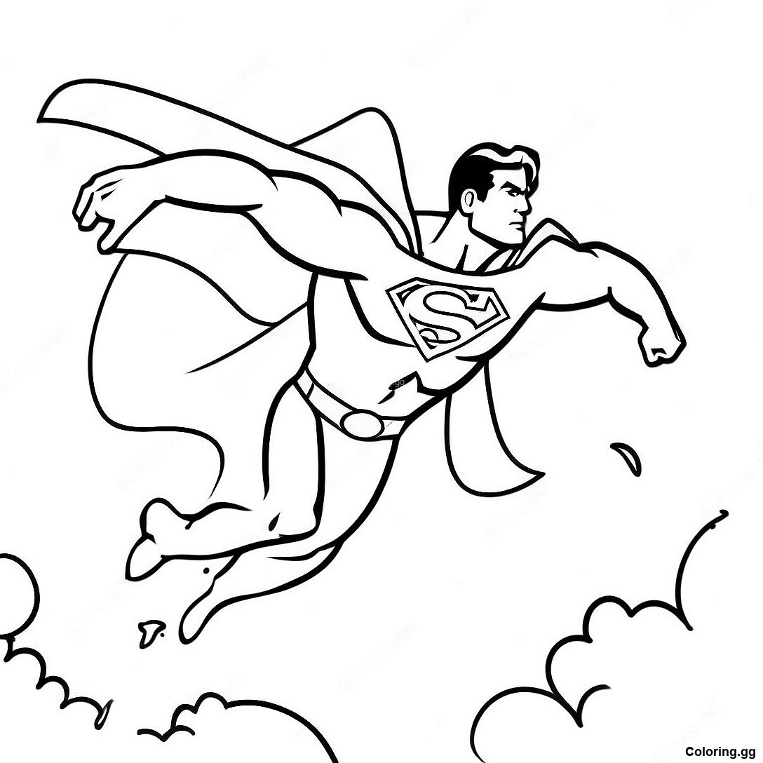 Завантажити версію Супермен, Що Летить Через Небо Розмальовка для друку в PDF