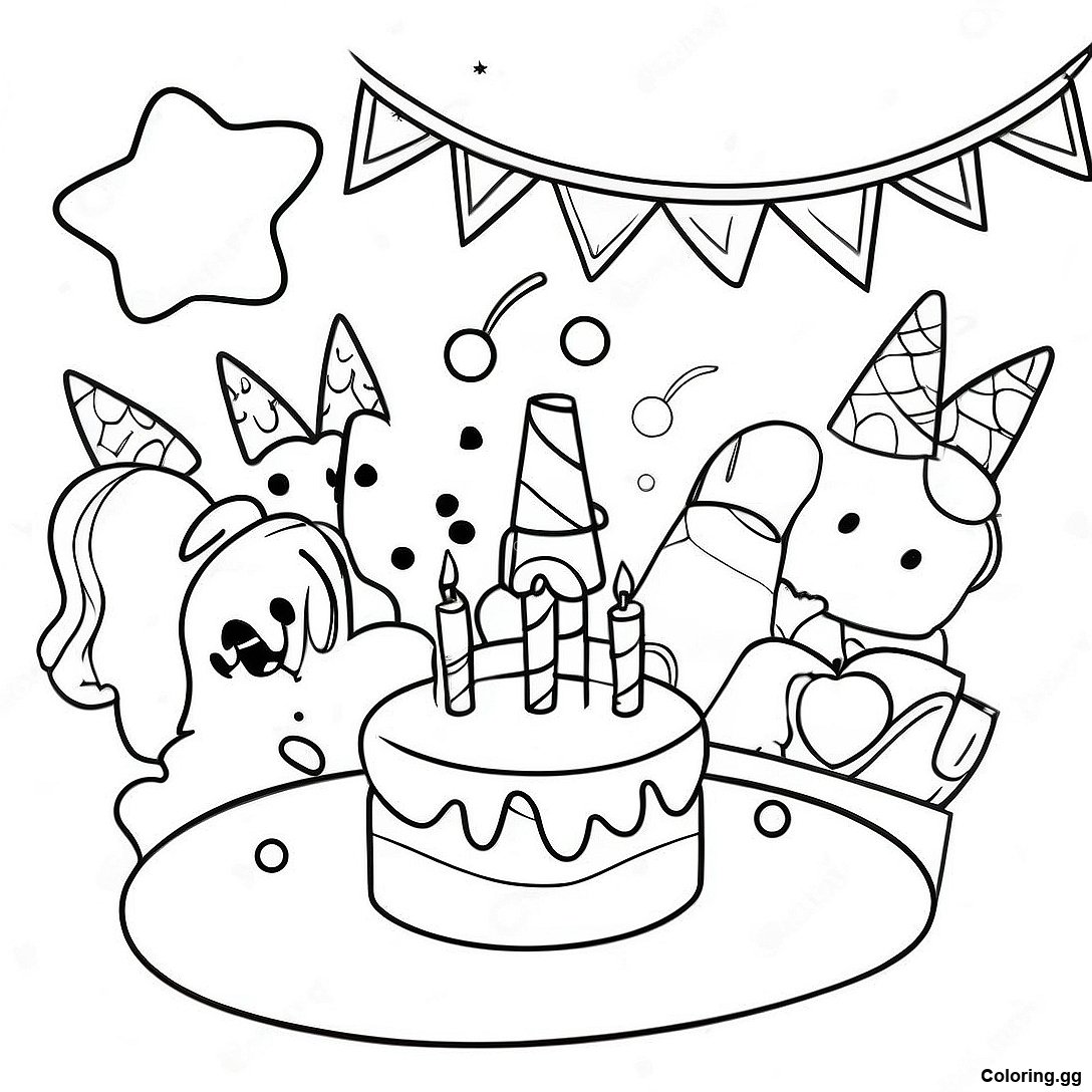 Весела Сцена Святкування 5-Го Дня Народження Розмальовка