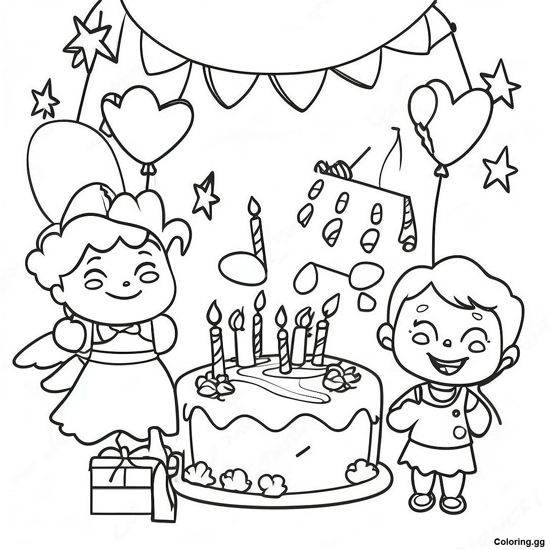 Завантажити версію Весела Сцена Святкування 5-Го Дня Народження Розмальовка для друку в PDF